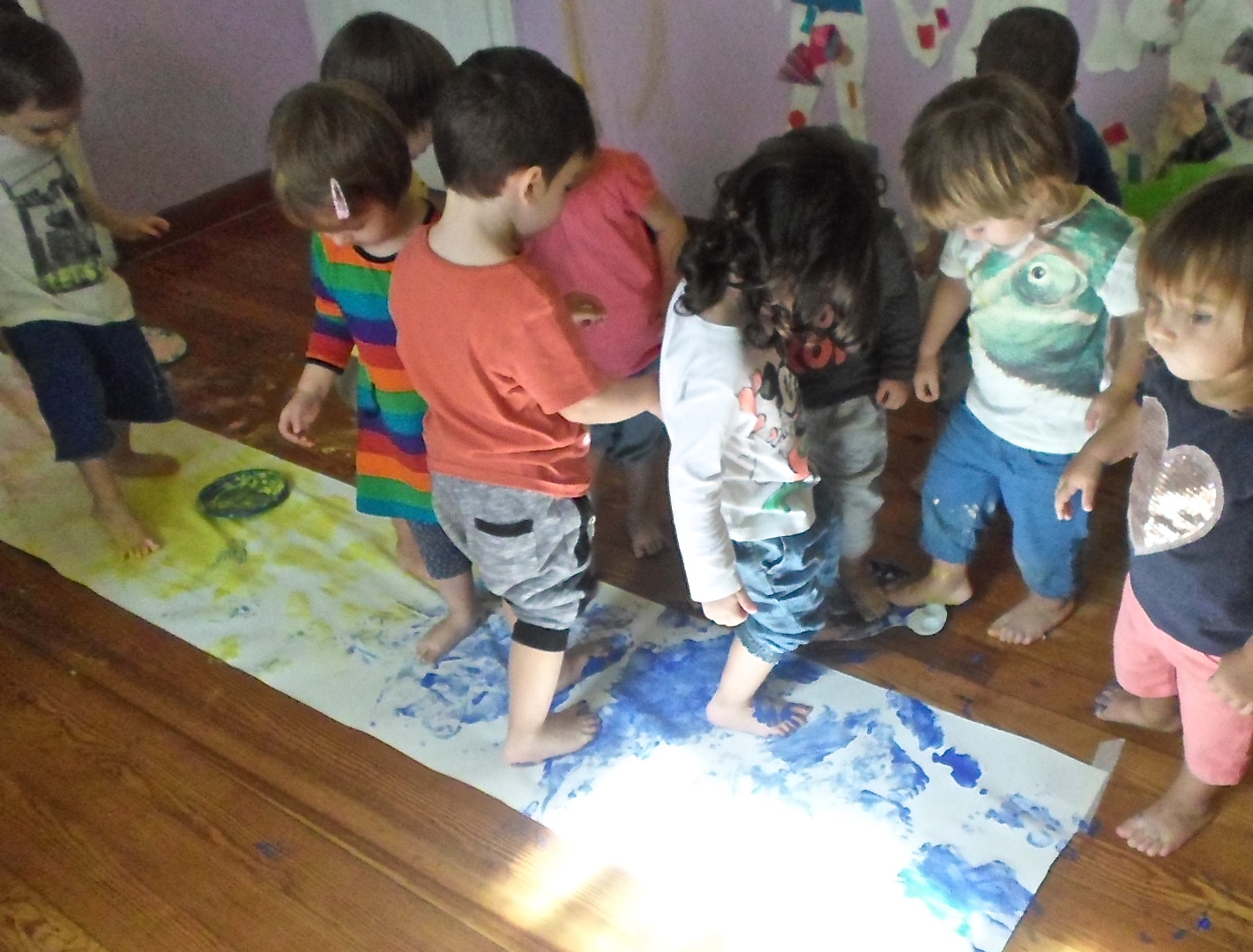 It’s time in class to explore by using our feet. Sο, we take our shoes off, by ourselves, though we are still two y.o., and the trip begins….