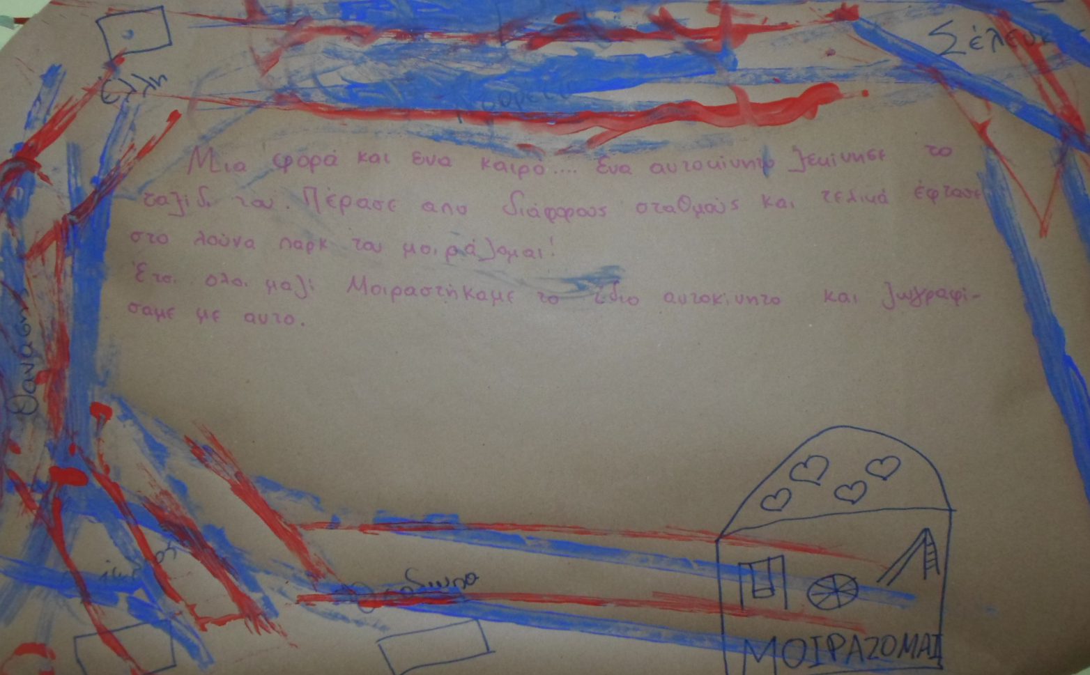 We became friends with the small car and drove it to the big “Luna Park of sharing”, the place where all children and cars share their toys.