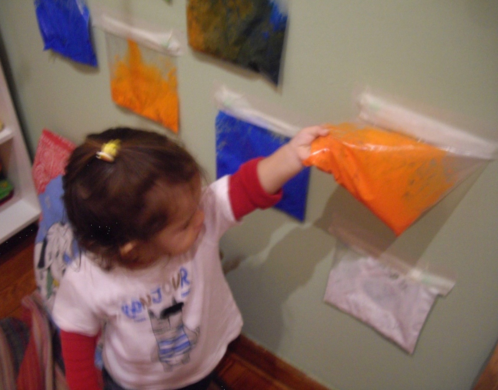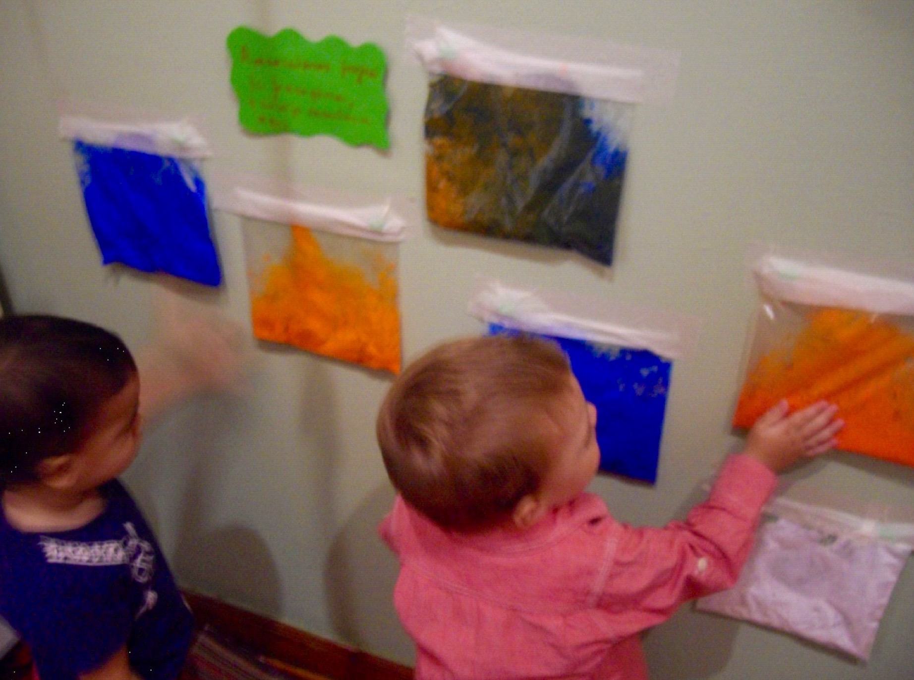 The colorful pasta bags were magically transformed into our new “sensory bags”! A new toy that we added in our class play equipment.