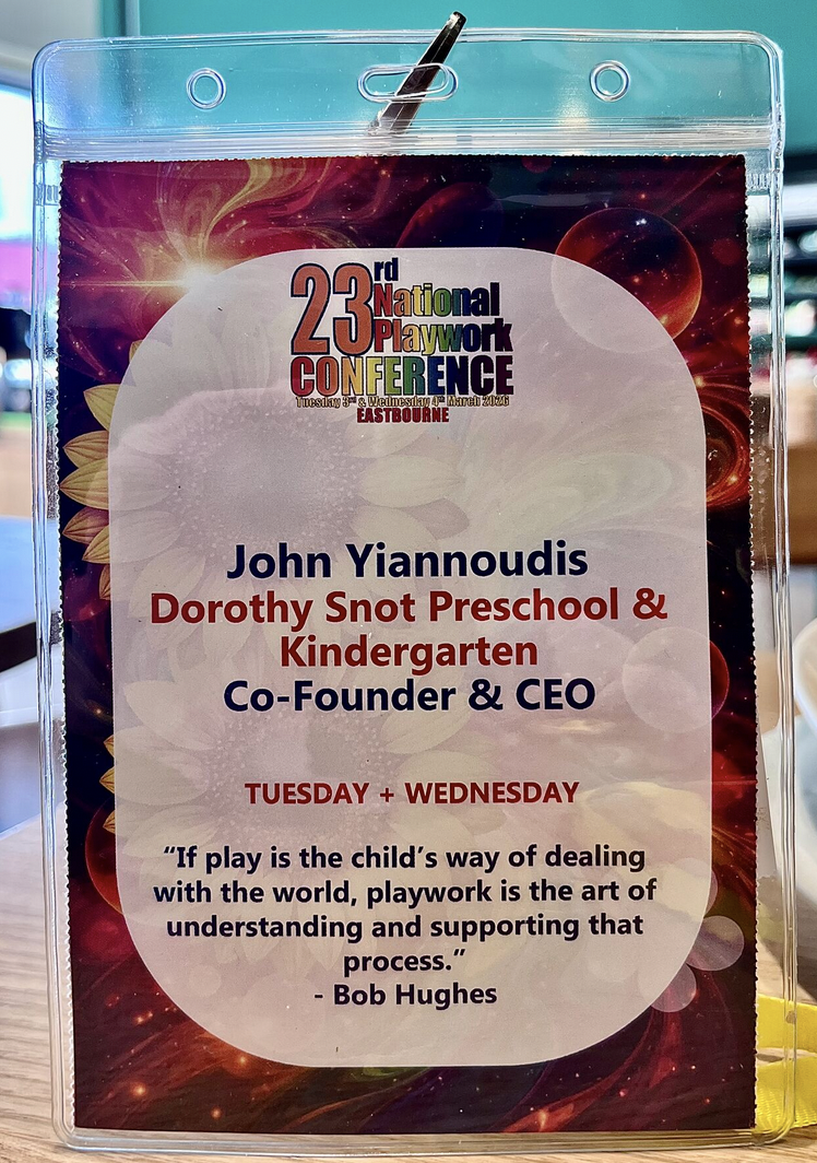 On March 3, 2026 Dorothy Snot co-founder & CEO John C. Yiannoudis participated in the 23th UK Playwork Conference in order to present the unique educational philosophy lifederivedlearning.com developed in Dorothy Snot preschool & kindergarten.